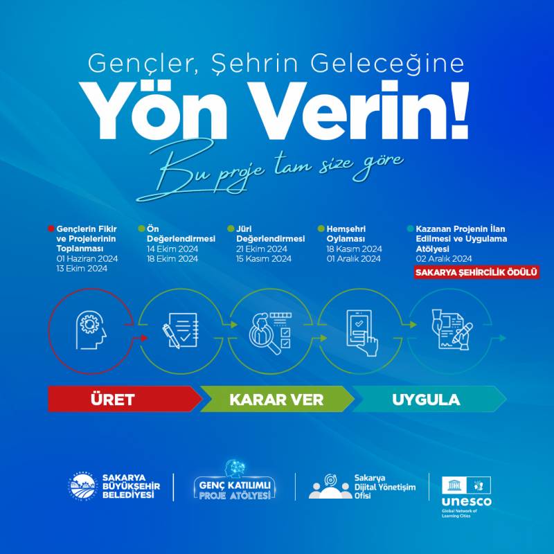Applications will be made as an individual, group, initiative, platform or club between the ages of 15-30 until October 13 via the website "www.sakarya.bel.tr". After the jury evaluation, the projects will be submitted to public voting on November 18 - December 01, 2024. The winning projects will be announced on December 2.