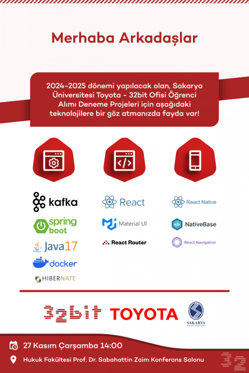 Sakarya University Toyota - 32bit Office 2024-2025 term Student Recruitment Trial Projects poster is attached.