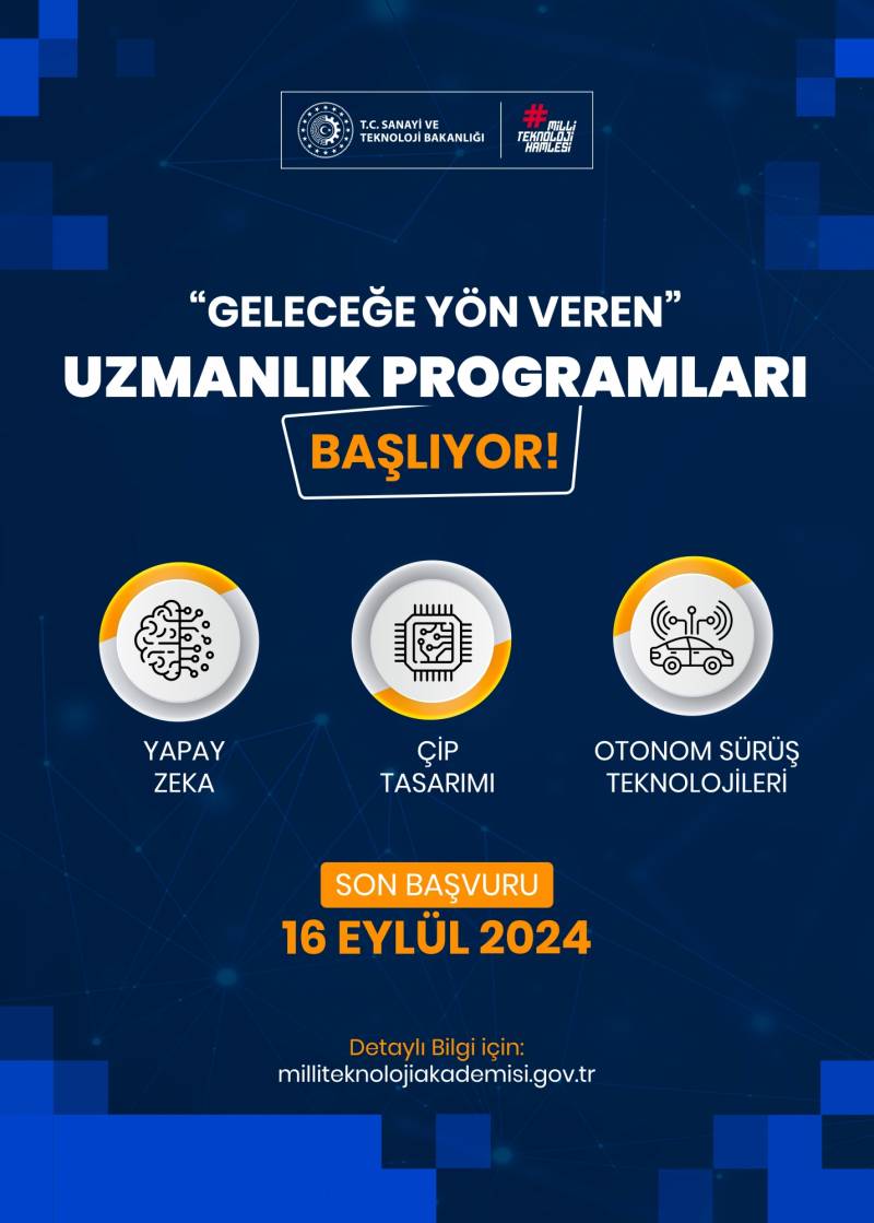 Training programs in the fields of Artificial Intelligence, Autonomous Driving Technologies and Chip Design have been implemented in order to train the qualified human resources needed in line with our country's National Technology Movement.
