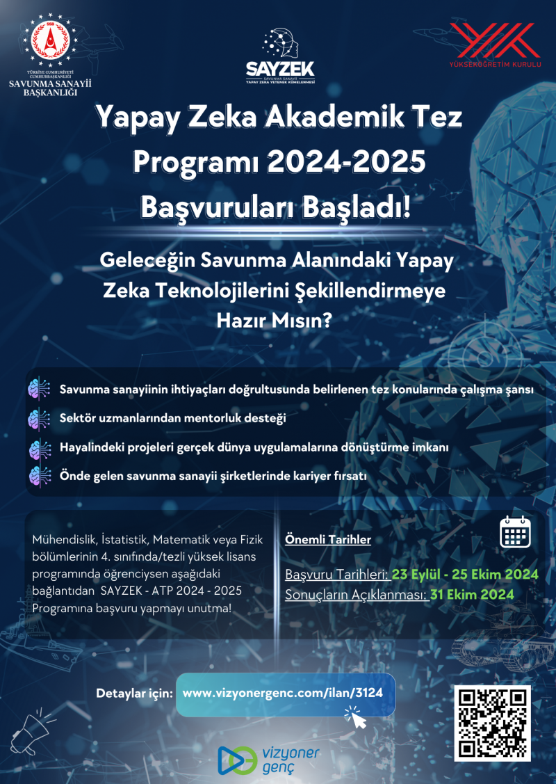 The "Artificial Intelligence Academic Thesis Program (ATP)" has been initiated under the coordination of the Council of Higher Education and the Presidency of Defense Industries, and the articles and topics related to the application process are attached.