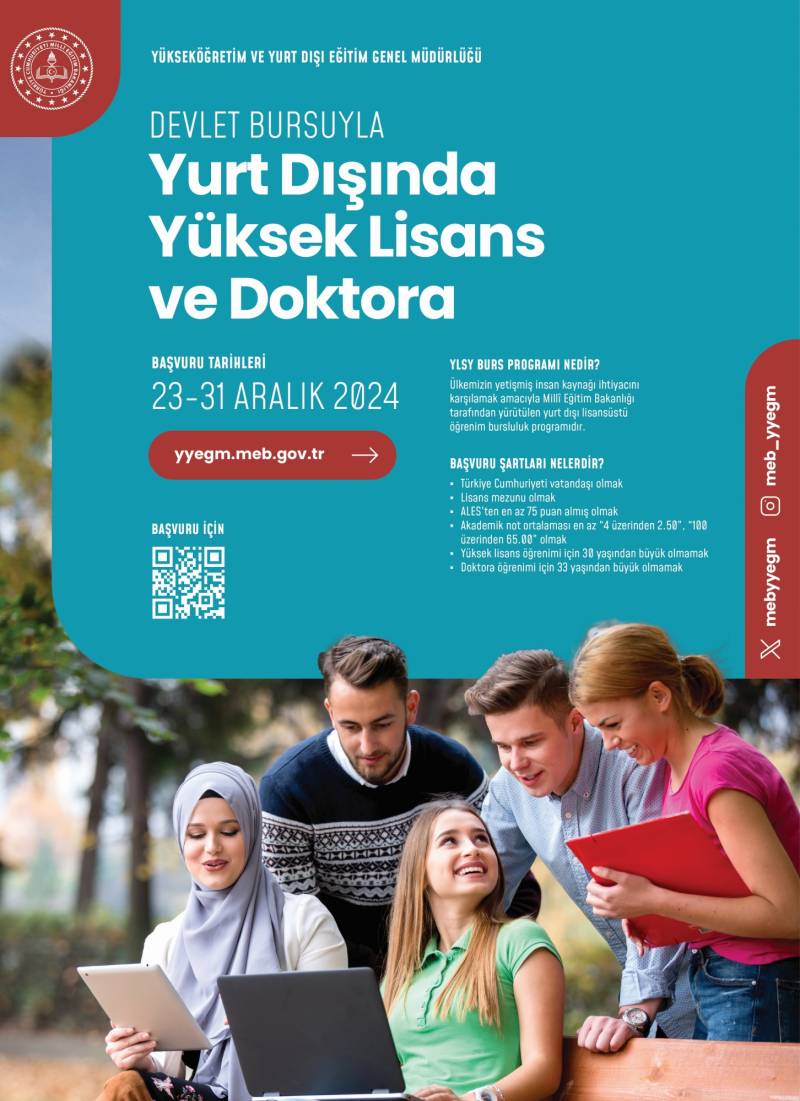 In order to train the qualified manpower needed by higher education institutions and other public institutions and organizations, students are sent abroad for graduate education with the scholarship (YLSY Scholarship Program) granted by the Ministry of National Education based on the Law No. 1416 on Students to be Sent to Foreign Countries.